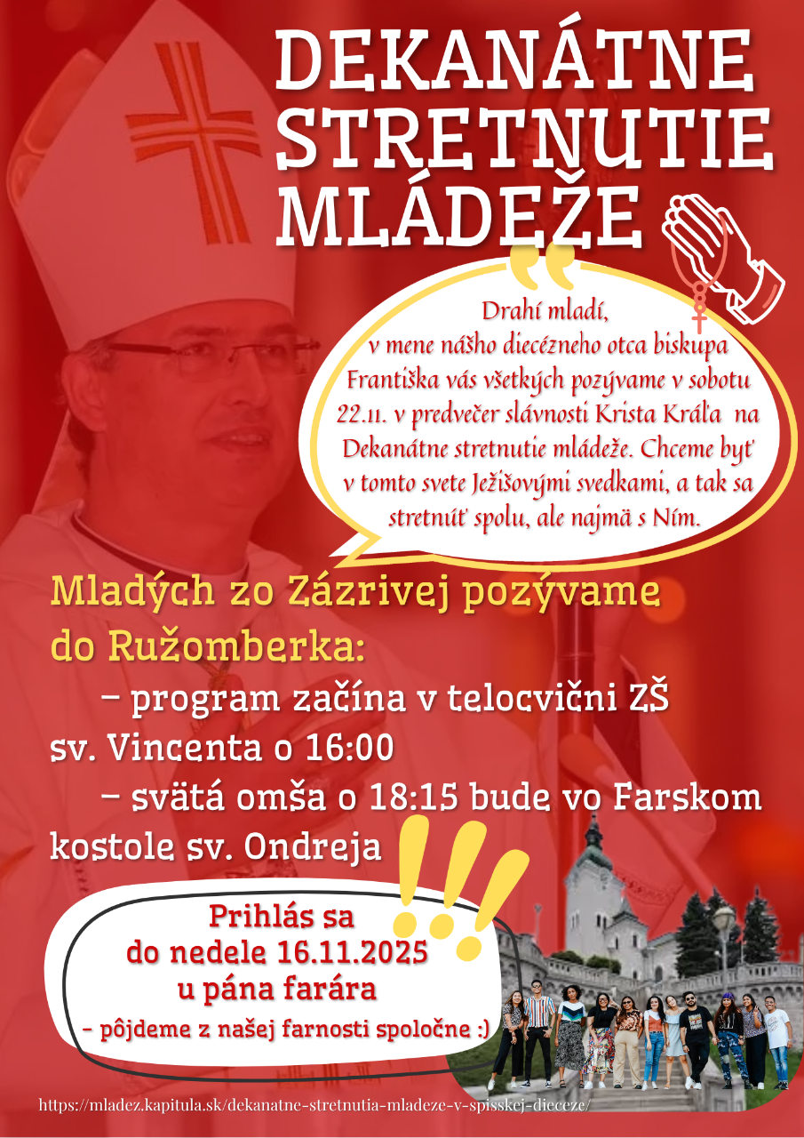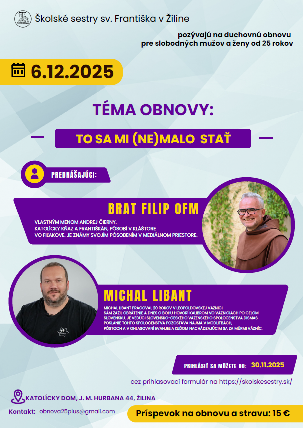 Prosíme všetky hnutia a spoločenstvá, aby sa zaregistrovali na tomto linku a uviedli počet účastníkov, ktorí sa zúčastnia doobedňajšieho programu, ktorý je otvorený pre všetkých účastníkov. Dátum ukončenia registrácie je 20. november 2025.
